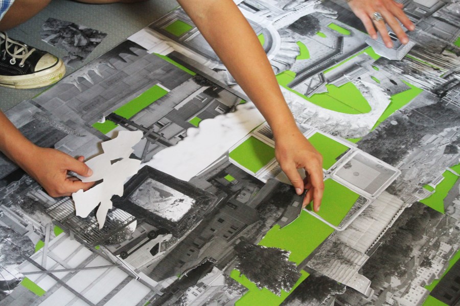 Le fond vert est le lieu principal de déroulement des ateliers et occupe une place importante à la fois en tant qu’outil de production (incrustation) et élément constituant de la structure visuelle et narrative du film. Le son et l’image sont placés au même niveau d’importance et travaillés en deux temps, utilisant ainsi des techniques tel que le bruitage ou l’image photographique.